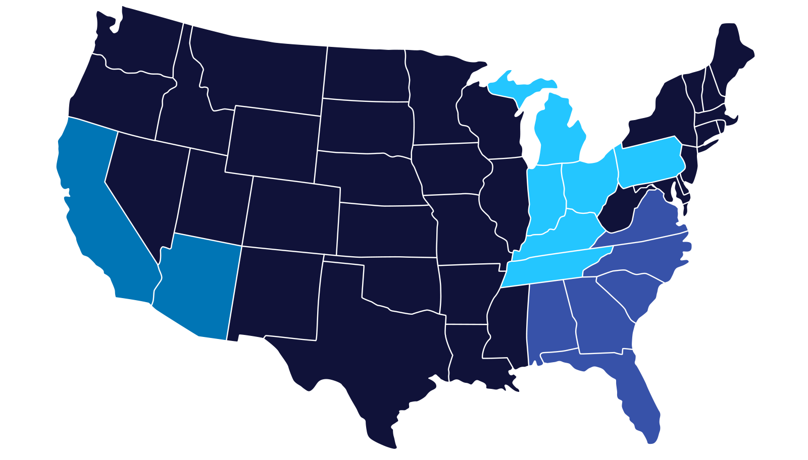 Alaska, Colorado, Cononecticut, Delaware, District of Columbia, Hawaii, Idaho, Illinois, Iowa, Kansas, Louisiana, Maine, Maryland, Massachusetts, Minnesota, Mississippi, Missouri, Montana, Nebraska, Nevada, New Hampshire, New Jersey, New Mexico, New York, North Dakota, Oklahoma, Oregon, Rhode Island, South Dakota, Texas, Utah, Vermont, Washington, West Virginia, Wisconsin, and Wyoming
